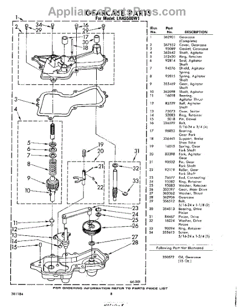 Parts for Whirlpool LHA5500W1: 08 - Gear Case Parts