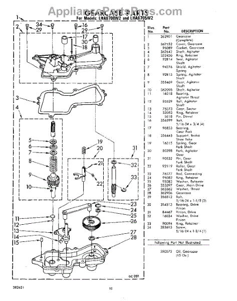 Parts for Whirlpool LHA6705W2: 10 - Gear Case Parts