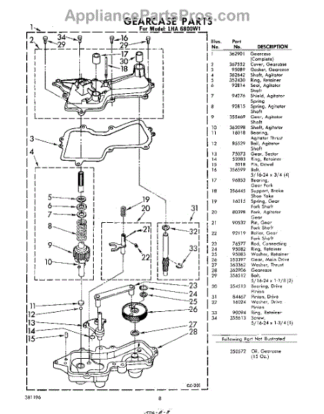 Parts for Whirlpool LHA6800W1: 08 - Gear Case Parts