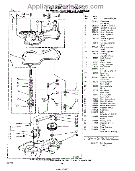 Parts for Whirlpool LHA6900W0: 10 - Gear Case Parts