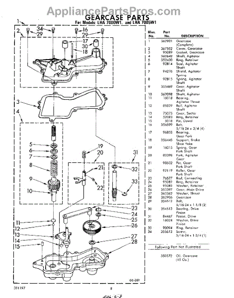 Parts for Whirlpool LHA7000W1: 08 - Gear Case Parts