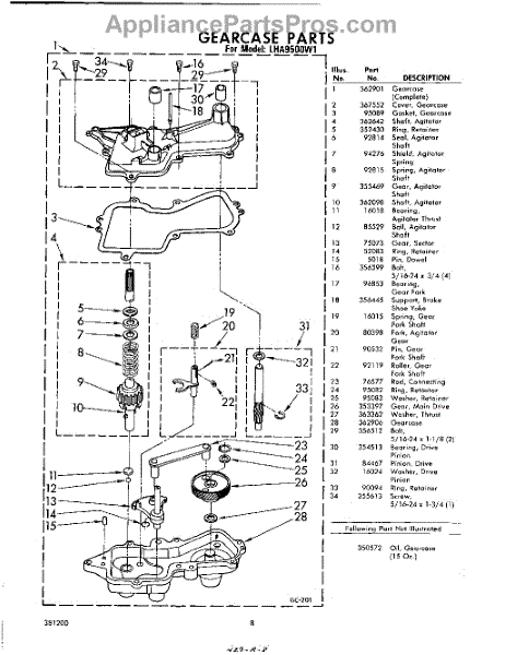 Parts for Whirlpool LHA9500W1: 08 - Gear Case Parts