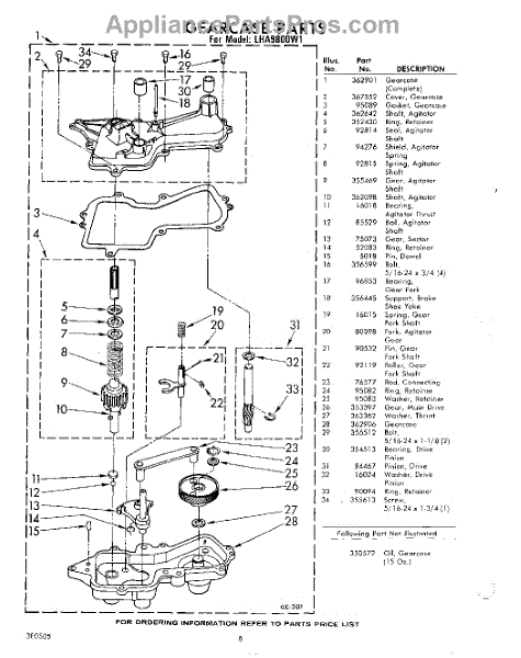 Parts for Whirlpool LHA9800W1: 08 - Gear Case Parts