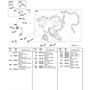 Parts for Briggs & Stratton 580447-0216-E2: Gear Cover, Governor Crank Parts