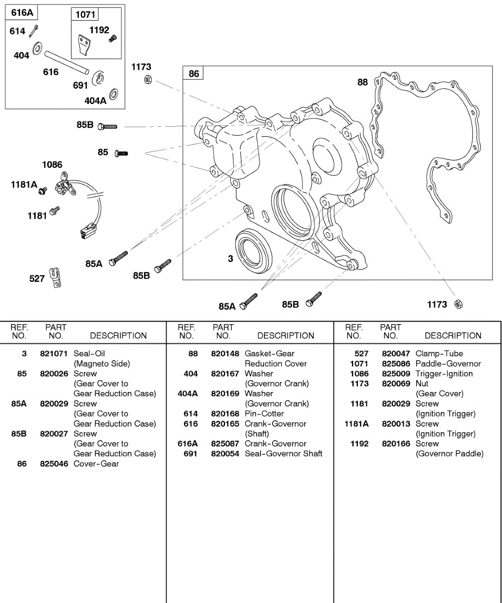 Parts for Briggs & Stratton 580447-0328-E2: Gear Cover, Governor Crank Parts
