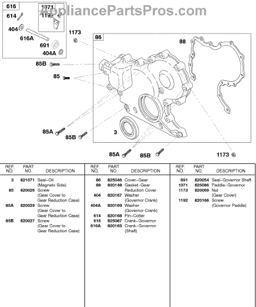 Parts for Briggs & Stratton 589447-0305-E2: Gear Cover, Governor Crank Parts