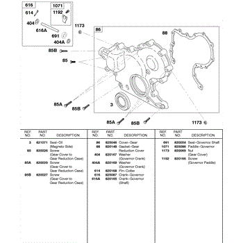 Parts for Briggs & Stratton 589447-0308-E2: Gear Cover, Governor Crank Parts