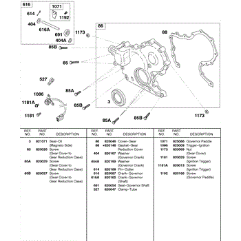 Parts for Briggs & Stratton 430447-0105-A1: Gear Cover, Ignition Trigger, Governor Crank Parts
