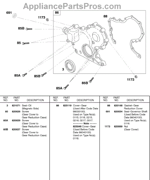 Parts for Briggs & Stratton 433447-0115-01: Gear Cover Parts