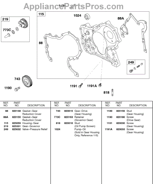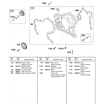 Parts for Briggs & Stratton 589447-0310-99: Gear Housing Parts
