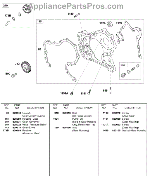 Parts for Briggs & Stratton 58E447-0411-E2: Gear Housing Parts