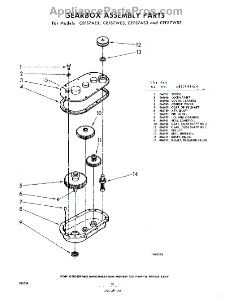 Parts for Whirlpool CEFS7AS3: 10 - Gearbox Assembly Parts