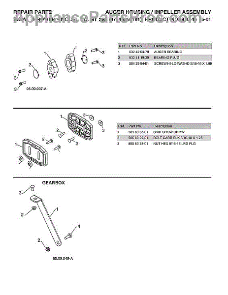 Parts for Husqvarna ST224-97046850101: Gearbox Parts