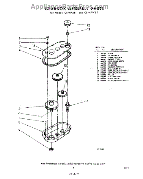 Parts for Whirlpool CEFH7AE1: 09 - Gearbox Parts