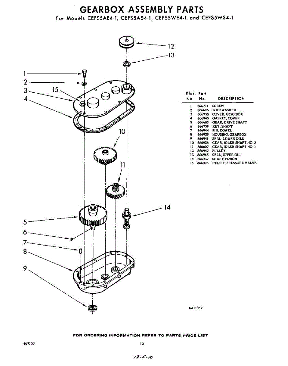 Parts for Whirlpool CEFS5AE41: 10 - Gearbox Parts