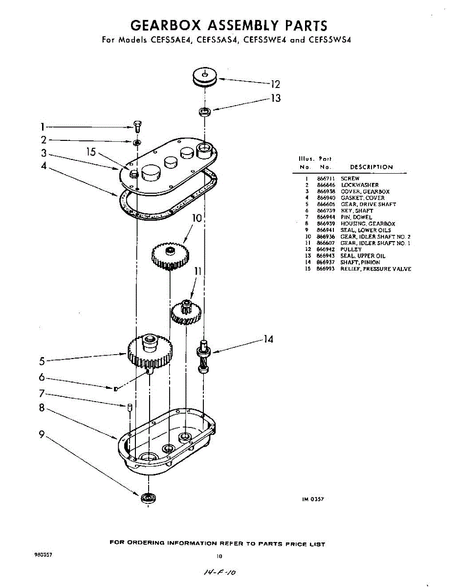 Parts for Whirlpool CEFS5AS4: 10 - Gearbox Parts