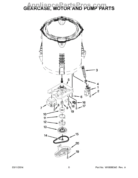 The Washer Gear Case is an OEM part for Whirlpool washing machines. It is a critical component that houses the gears responsible for the rotation and agitation of the washer drum. This gear case ensures that the washer performs its washing cycles effectively by providing the necessary mechanical movements.