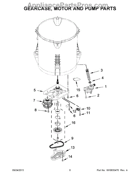This washer drive motor is the main component that powers the spin cycle of the appliance. When a washing machine stops spinning or washing, there could be several issues. If the buttons on the control panel are still responsive, most likely it is the drive motor. There could also be a burning smell coming from the washer when the drive motor malfunctions. Using a voltage meter is the only way to show where the problem lies. Unplug the washer and turn off the water supply before starting repairs. Drain all the water from the drain hose into a bucket. Remove the two screws at the base of the front panel, then remove the two screws at the top of the back panel. The top console should be removable at this point, and removing the two screws at the bottom outside corners of the back panel should allow the base to be separated. There are two metal clips attaching the pump to the motor. Unplug the connections from the motor and capacitor. Unscrew the two screws that fasten the motor in, and it should slide out. Reverse these instructions for installation of the new component.This Whirlpool washer drive motor is a genuine OEM replacement part sourced directly from Whirlpool. There are no other parts included with this listing. This part is compatible with Whirlpool and Kenmore appliances.