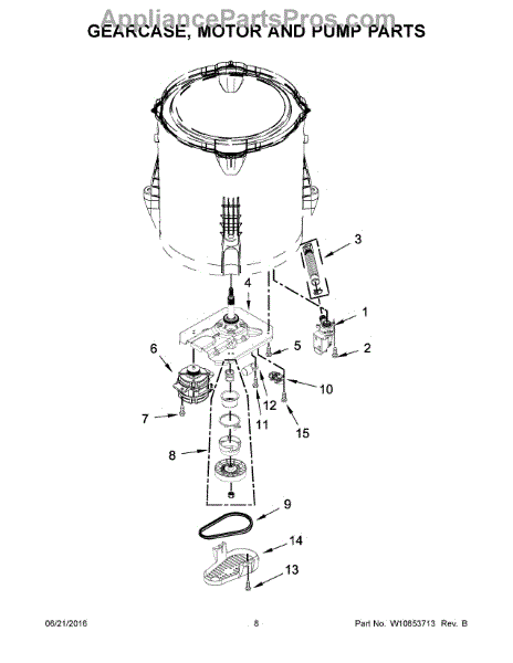 The Washer Gear Case is an OEM part for Whirlpool washing machines. It is a critical component that houses the gears responsible for the rotation and agitation of the washer drum. This gear case ensures that the washer performs its washing cycles effectively by providing the necessary mechanical movements.