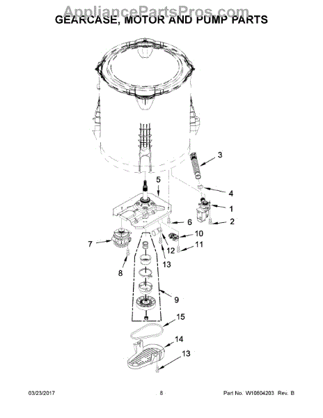 The Washer Gear Case is an OEM part for Whirlpool washing machines. It is a critical component that houses the gears responsible for the rotation and agitation of the washer drum. This gear case ensures that the washer performs its washing cycles effectively by providing the necessary mechanical movements.