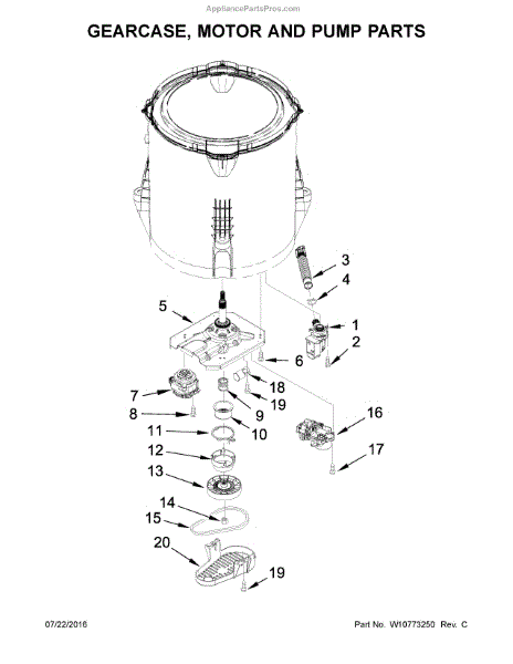 The Washer Gear Case is an OEM part for Whirlpool washing machines. It is a critical component that houses the gears responsible for the rotation and agitation of the washer drum. This gear case ensures that the washer performs its washing cycles effectively by providing the necessary mechanical movements.