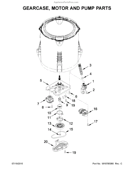 The Washer Gear Case is an OEM part for Whirlpool washing machines. It is a critical component that houses the gears responsible for the rotation and agitation of the washer drum. This gear case ensures that the washer performs its washing cycles effectively by providing the necessary mechanical movements.