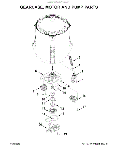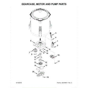 The Washer Gear Case is an OEM part for Whirlpool washing machines. It is a critical component that houses the gears responsible for the rotation and agitation of the washer drum. This gear case ensures that the washer performs its washing cycles effectively by providing the necessary mechanical movements.