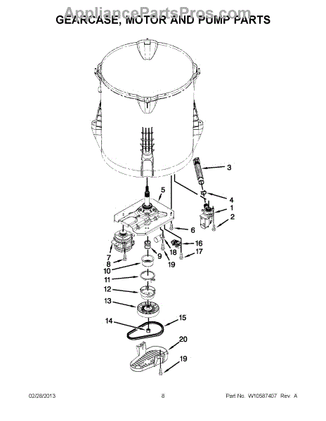 The Washer Gear Case is an OEM part for Whirlpool washing machines. It is a critical component that houses the gears responsible for the rotation and agitation of the washer drum. This gear case ensures that the washer performs its washing cycles effectively by providing the necessary mechanical movements.