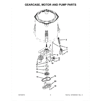 The Washer Gear Case is an OEM part for Whirlpool washing machines. It is a critical component that houses the gears responsible for the rotation and agitation of the washer drum. This gear case ensures that the washer performs its washing cycles effectively by providing the necessary mechanical movements.