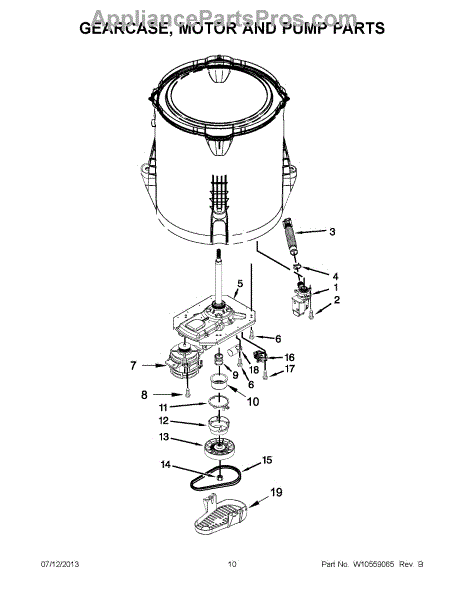 This is a washing machine gearcase. The purpose of the gearcase is to drive the agitator and spin the basket within the washing machine. When the gearcase stops working correctly, the water may not drain from the clothing after the spin cycle. The user may also notice a burning odor that comes from the washing machine while it's in operation. Sometimes, the washing machine will attempt to agitate and run the spin cycle at the same time. If this is the case, the gearcase needs to be replaced. The appliance will need to be unplugged before replacing this part. Wear gloves to protect the hands for this process.This component is compatible with washing machines that are manufactured by Whirlpool, Kenmore, and Maytag. It is sold individually. This is a genuine OEM replacement part that comes straight from the manufacturer. It's high quality and made to last.