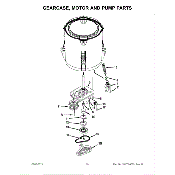 This is a washing machine gearcase. The purpose of the gearcase is to drive the agitator and spin the basket within the washing machine. When the gearcase stops working correctly, the water may not drain from the clothing after the spin cycle. The user may also notice a burning odor that comes from the washing machine while it's in operation. Sometimes, the washing machine will attempt to agitate and run the spin cycle at the same time. If this is the case, the gearcase needs to be replaced. The appliance will need to be unplugged before replacing this part. Wear gloves to protect the hands for this process.This component is compatible with washing machines that are manufactured by Whirlpool, Kenmore, and Maytag. It is sold individually. This is a genuine OEM replacement part that comes straight from the manufacturer. It's high quality and made to last.