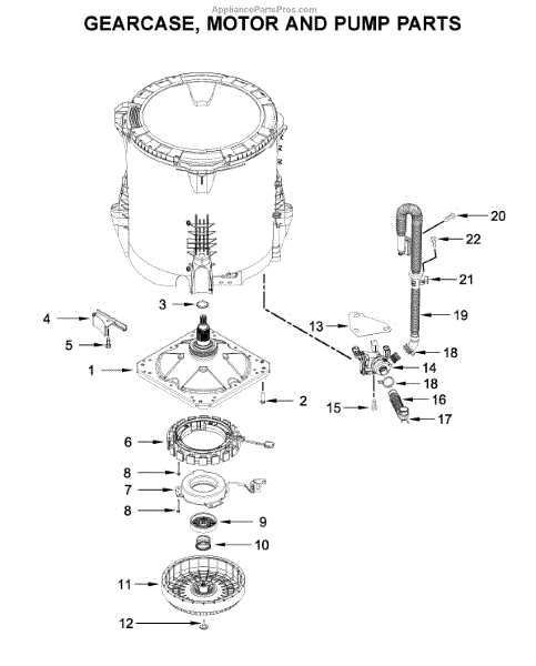 The Gearcase is an OEM part for Whirlpool washing machines. As a core mechanical component, it houses the transmission gears that connect the motor to the agitator shaft or basket drive mechanism inside the unit. The precision-cut gears are designed to efficiently transfer power and spin cycles.