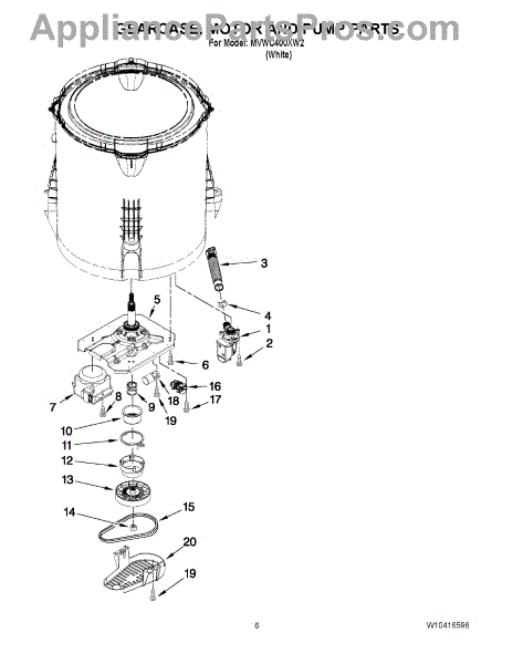 Parts for Maytag MVWC400XW2: 04 - Gearcase, Motor And Pump Parts