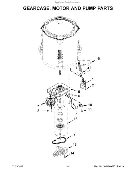 The Washer Gear Case is an OEM part for Whirlpool washing machines. It is a critical component that houses the gears responsible for the rotation and agitation of the washer drum. This gear case ensures that the washer performs its washing cycles effectively by providing the necessary mechanical movements.