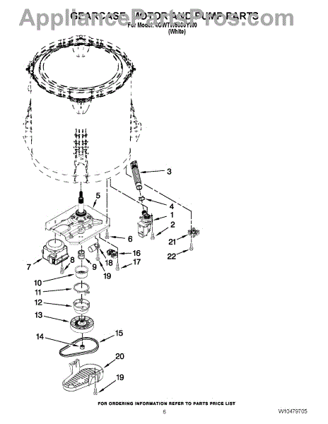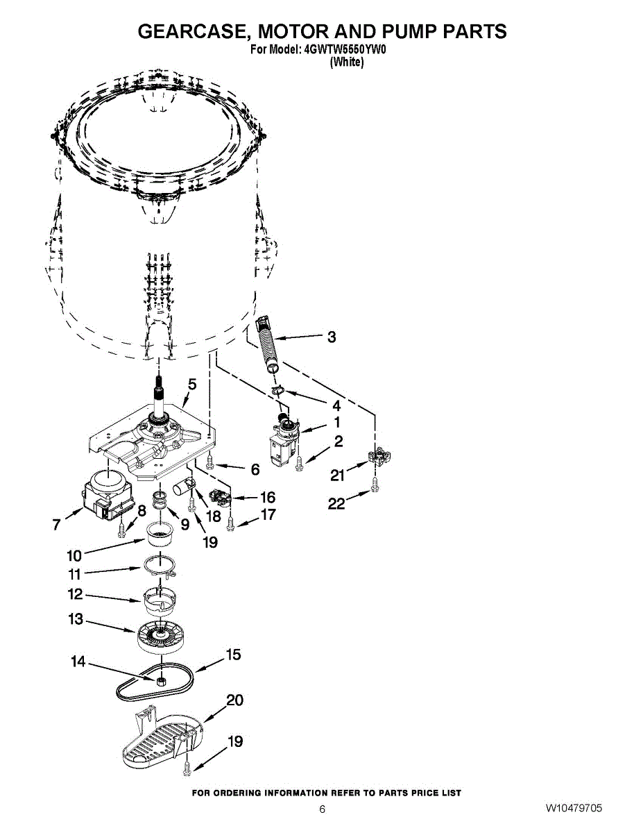 Parts for Whirlpool 4GWTW5550YW0: 04 - Gearcase, Motor And Pump Parts