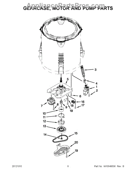 This pulley cover encloses the drive belt and motor pulley at the base of the appliance. It protects moving parts from debris and contact, helping reduce noise and wear when the original cover is cracked, warped, or missing.