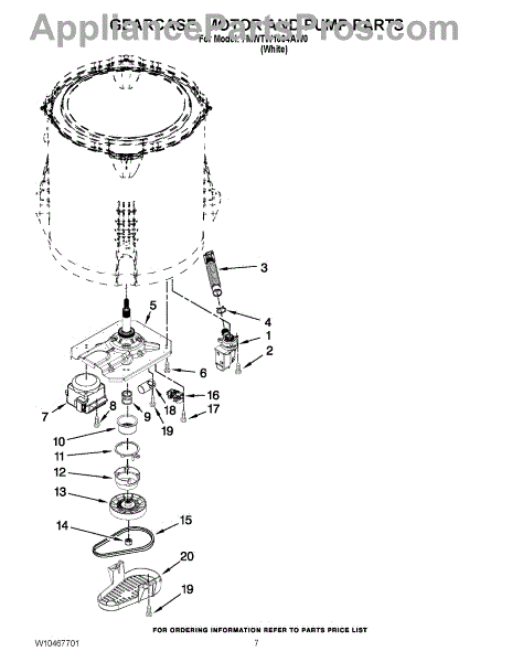 Parts for Whirlpool 7MWTW1604AW0: 04 - Gearcase, Motor And Pump Parts