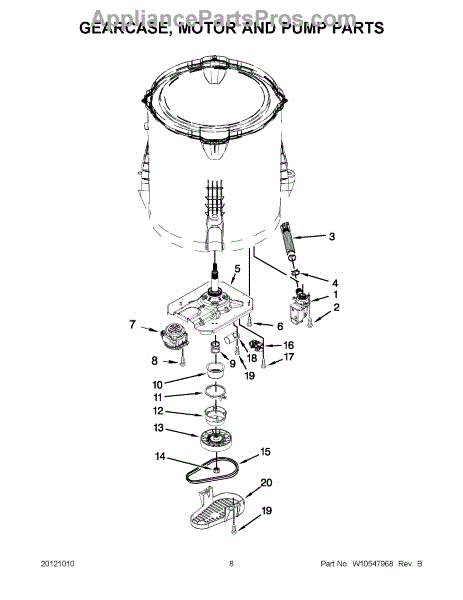 The Washer Gear Case is an OEM part for Whirlpool washing machines. It is a critical component that houses the gears responsible for the rotation and agitation of the washer drum. This gear case ensures that the washer performs its washing cycles effectively by providing the necessary mechanical movements.