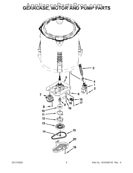 Parts for Whirlpool 7MWTW1606AW1: 04 - Gearcase, Motor And Pump Parts