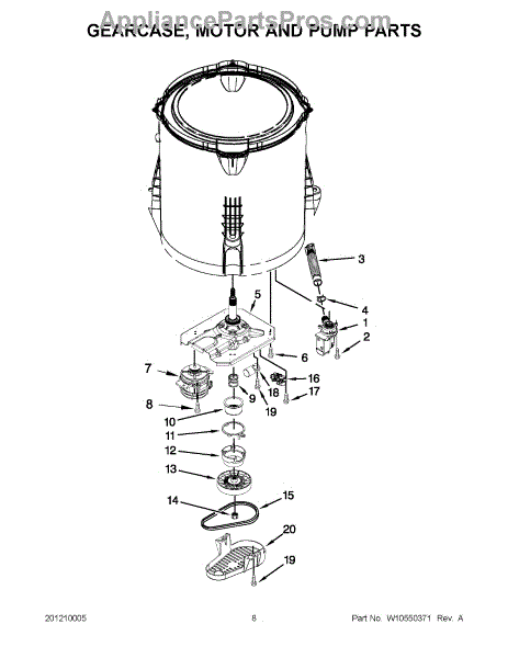 Parts for Whirlpool 7MWTW1700AQ0: 04 - Gearcase, Motor And Pump Parts