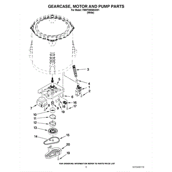 Parts for Whirlpool 7MWTW5500XW1: 04 - Gearcase, Motor And Pump Parts