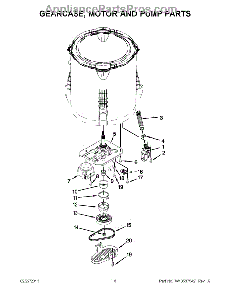 Parts for Whirlpool 7MWTW5622BW0: 04 - Gearcase, Motor And Pump Parts