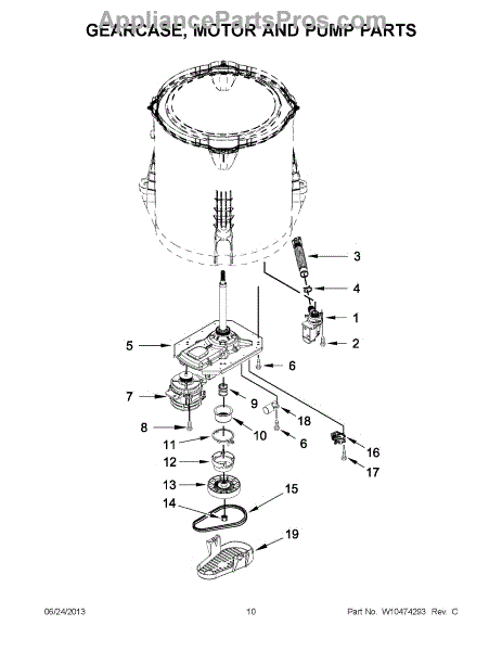 This is a washing machine gearcase. The purpose of the gearcase is to drive the agitator and spin the basket within the washing machine. When the gearcase stops working correctly, the water may not drain from the clothing after the spin cycle. The user may also notice a burning odor that comes from the washing machine while it's in operation. Sometimes, the washing machine will attempt to agitate and run the spin cycle at the same time. If this is the case, the gearcase needs to be replaced. The appliance will need to be unplugged before replacing this part. Wear gloves to protect the hands for this process.This component is compatible with washing machines that are manufactured by Whirlpool, Kenmore, and Maytag. It is sold individually. This is a genuine OEM replacement part that comes straight from the manufacturer. It's high quality and made to last.