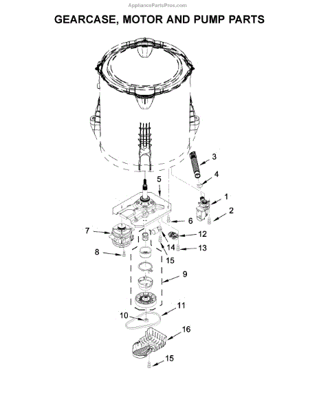 Parts for Whirlpool WTW4850HW0: Gearcase, Motor And Pump Parts