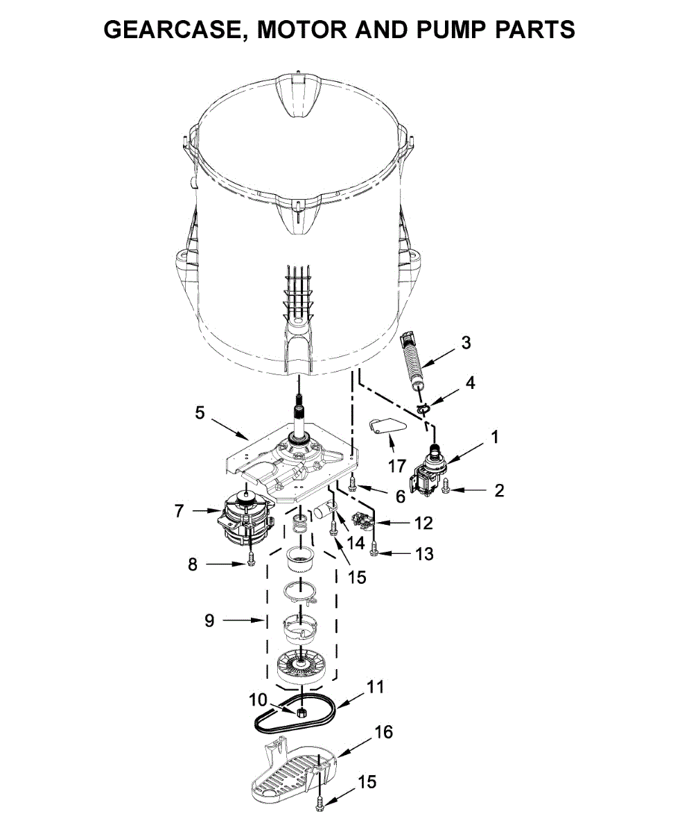 Washer won't spin or agitate? Worn gearcase gears cause thumping noises and prevent proper drum movement. Moderately difficult repair requires disassembly.