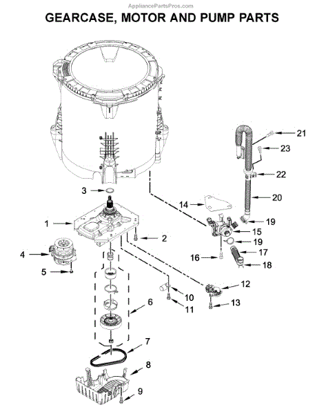 Parts for Whirlpool WTW5100HW0: Gearcase, Motor And Pump Parts