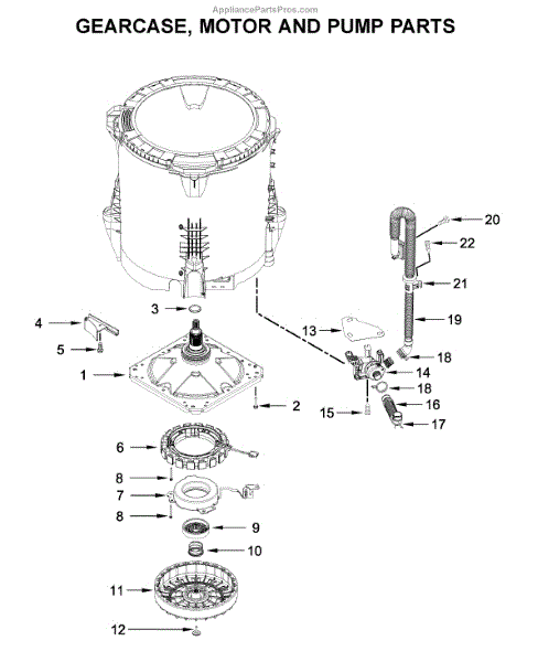 The Gearcase is an OEM part for Whirlpool washing machines. As a core mechanical component, it houses the transmission gears that connect the motor to the agitator shaft or basket drive mechanism inside the unit. The precision-cut gears are designed to efficiently transfer power and spin cycles.