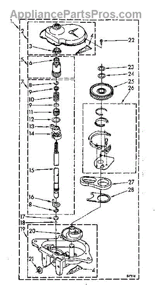 Supports the washer transmission shaft to reduce axial wear and noise. Replace when you hear grinding sounds or experience rough operation. Confirm fit with your model number.
