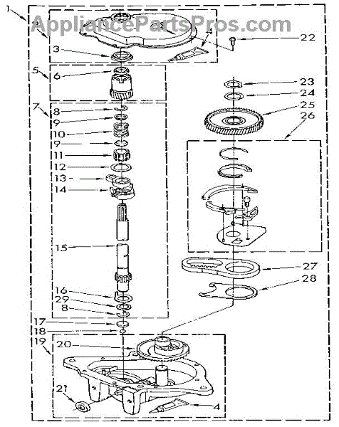 Supports the washer transmission shaft to reduce axial wear and noise. Replace when you hear grinding sounds or experience rough operation. Confirm fit with your model number.