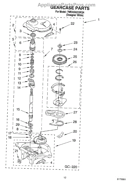 Parts for Roper 7MRAS6233KQ4: 08 - Gearcase Parts